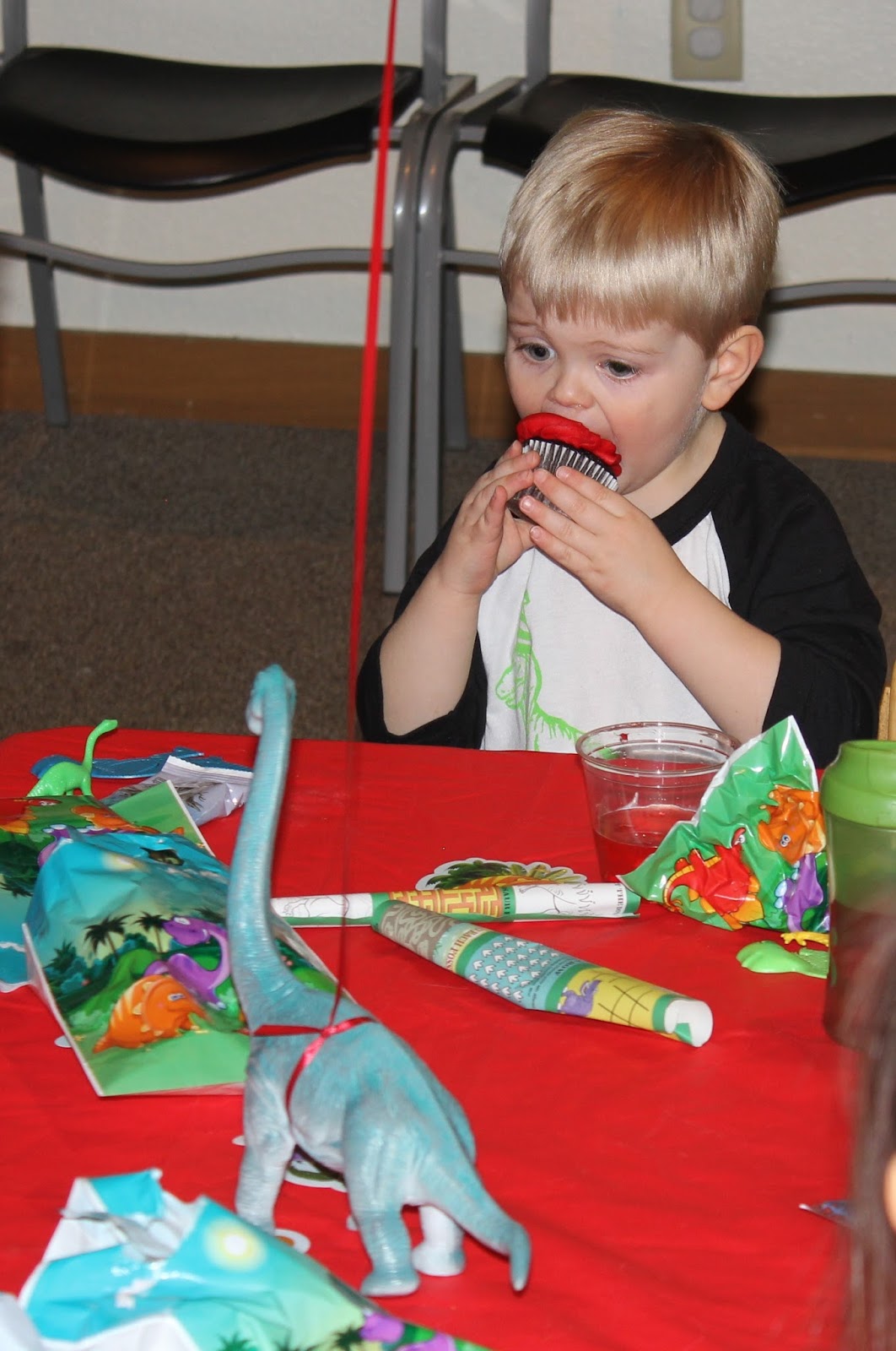 Jameson was so excited about the brownies that he made sure all of his dinosaur "friends" were part of the celebration.